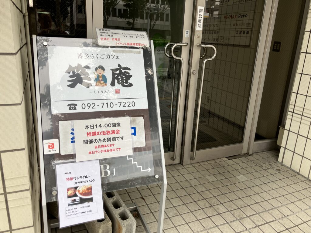 博多らくごカフェ笑庵さんへ桂蝶の治落語会に行って来ました